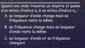 Fréquence et longueur d'onde d'une onde qui passe d'un milieu d'indice n1 à un milieu d'indice n2
